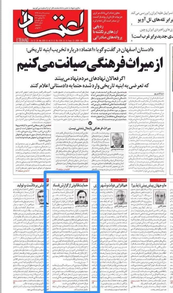 روزنامه اعتماد||صفحه اول||مورخ ۹۹/۵/۷
