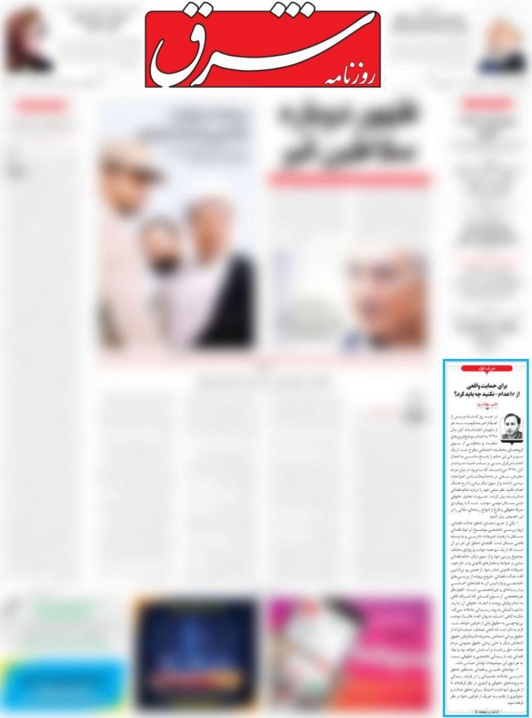 روزنامه شرق||صفحه اول||مورخ ۹۹/۵/۵