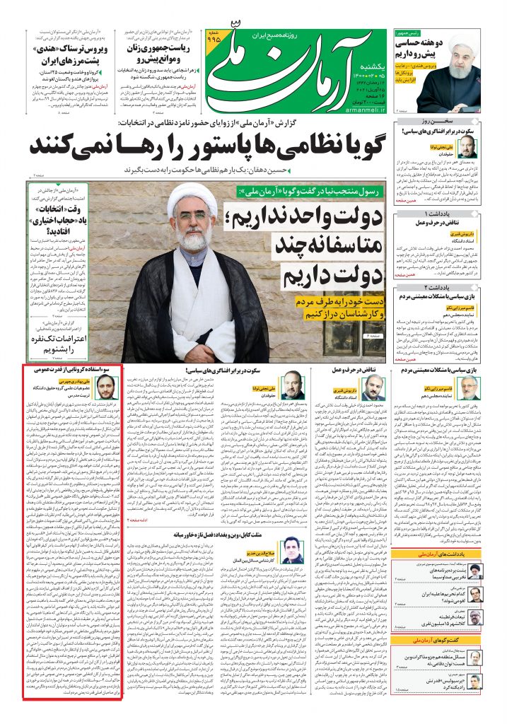 یادداشت || مورخ ۱۴۰۰/۰۲/۰۵ || روزنامه آرمان ملی