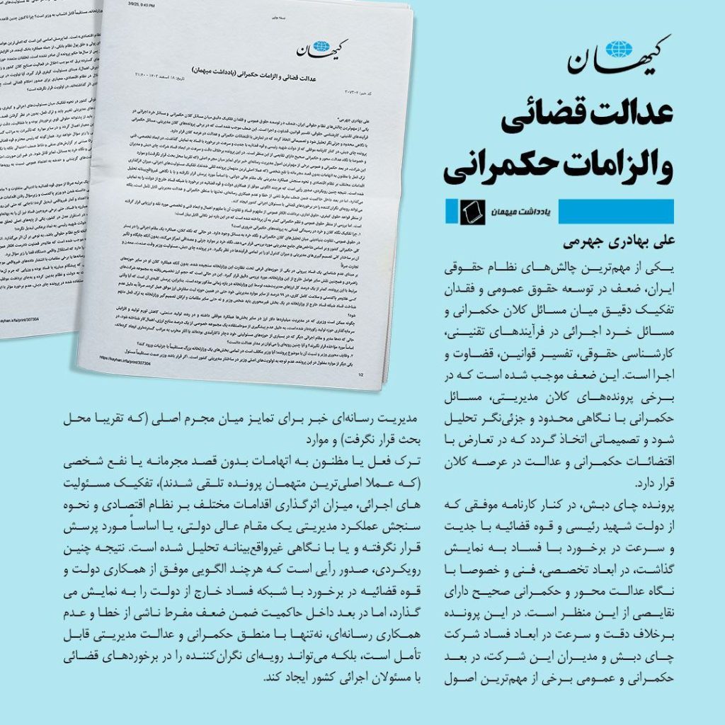 یادداشت | علی بهادری جهرمی | عضو هیئت علمی دانشکده حقوق دانشگاه تربیت مدرس