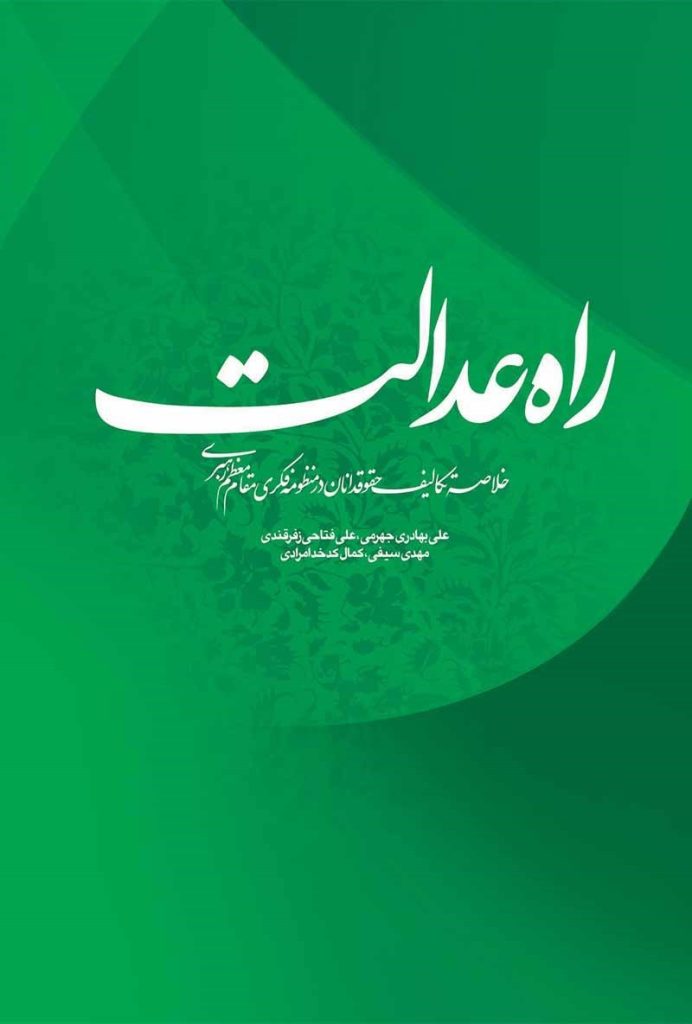 کتاب «راه عدالت» به کوشش جمعی از مؤلفان، خلاصهای از کتاب «رسالت حقوقدانان» شامل مجموعه تکالیف حقوقدانان در منظومه فکری رهبر معظم انقلاب است. آنچه در این پژوهش مورد توجه است، بازخوانی دیدگاه مقام معظم رهبری «مدظلهالعالی» در رابطه با جایگاه و نقش حقوقدانان و نهادهای حقوقی است که ضمن ایجاد منبعی موثق برای استفاده دستاندرکاران امر، برای جامعۀ علمی و دانشگاهی حقوقی نیز مثمر ثمر خواهد بود. در این کتاب، در بخش اول تحت عنوان «لزوم شناسایی هدف» به ترسیم هدف نهایی از حرکت انقلاب اسلامی و الزامات و بایستههای آن پرداخته میشود و سعی میشود جایگاه و نقش حقوقدانان در این مسیر روشن گردد. در بخش دوم تحت عنوان «لزوم کسب مقدمات ضروری حرکت در مسیر دستیابی به اهداف» تکالیف و بایستههای عمومی مورد نیاز برای دستیابی به اهداف از جمله خودسازی و تهذیب نفس، مسئولیتپذیری و حضور در صحنه، دشمنشناسی و مواردی از این دست مورد مطالعه قرار گرفته است. در بخش سوم تحت عنوان «لزوم طراحی ساختارها، فرآیندها و نهادهای مورد نیاز» به لزوم نظریهپردازی در حقوق اسلامی بهعنوان اولین قدم در راستای طراحی مسیر و نقشه راه حرکت حقوقدانان پرداخته شده و با عنایت به ابتناء حقوق اسلامی بر مفاهیم بنیادینی همچون مفهوم «عدالت» و «آزادی»، دو نمونه از مفهومشناسی در راستای نظریهپردازی حقوقی از سوی مقام معظم رهبری ارائه شده است. در بخش چهارم کتاب نیز تحت عنوان «لزوم ارتقاء بهرهوری حقوقی نهادها» به لزوم تلاش حقوقدانان در جهت کارآمدسازی حقوقی سازمآنها و نهادها و نقش حقوقدانان در ارتقاء عملکرد حقوقی آنها اشاره شده است. پس از آن به طور ویژه در بخش پنجم نهادهای حقوقی خاص و مهم کشور مدنظر قرار گرفته و تحت عنوان «لزوم ارتقاء کارآمدی نهادهای حقوقی» به موضوع کارآمدسازی هرچه بیشتر و ارتقاء عملکرد نهادهایی که کارویژه اصلی آنها ماهیت حقوقی دارد، و بایستهها و ابعاد آن از منظر مقام معظم رهبری پرداخته شده و تکلیف حقوقدانان در این راستا مدنظر قرار گرفته است. در بخش ششم کتاب نیز مسئولیتهای حقوقدانان در عرصهی بینالملل مورد بررسی و مطالعه قرار میگیرد.