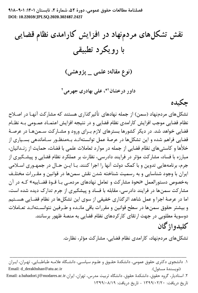 نقش تشکل های مردم نهادی در افزایش کارآمدی نظام قضایی