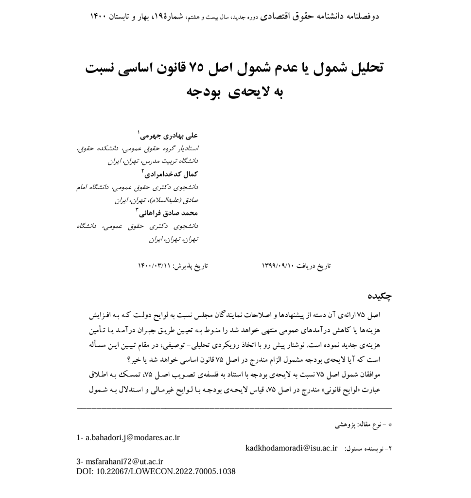 تحلیل شمول یا عدم شمول اصل ۷۵ قانون اساسی نسبت به لایحه ی بودجه