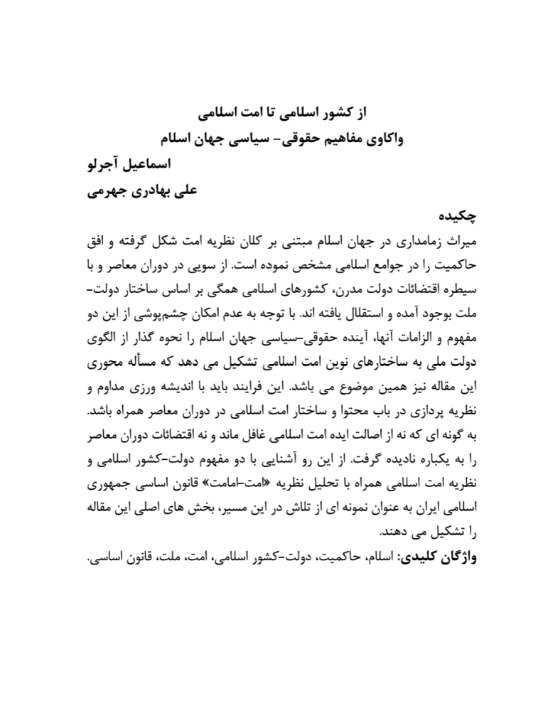 از کشور اسلامی تا امت اسلامی – واکاوی مفاهیم حقوقی- سیاسی جهان اسلام