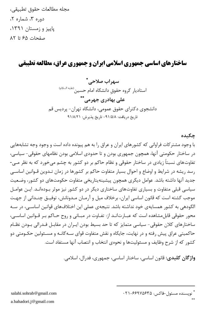 ساختارهای اساسی جمهوری اسلامی ایران و جمهوری عراق، مطالعه تطبیقی